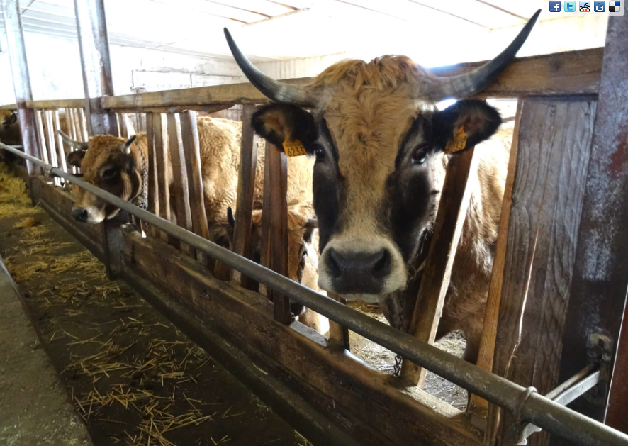 Bernard Bonnefoy : La particularité du Fin Gras du Mézenc c’est déjà le pays où sont élevés les animaux. L’agriculture s’y est établie au cours du Moyen-Âge et l’élevage s’est sédentarisé dans les montagnes. Ailleurs, on a toujours les estives, les transhumances et les alpages. Ici, au Mézenc, les animaux sont sur le plateau toute l’année entre 1.100 et 1.500 mètres d’altitude. C’est le plus haut élevage d’Europe ! Le Fin gras du Mézenc, c’est un animal qui nait, qui est élevé et qui est engraissé sur le Mézenc, c’est ça en résumé ce qui résume le cahier des charges. On est en phase avec le climat, le pays.