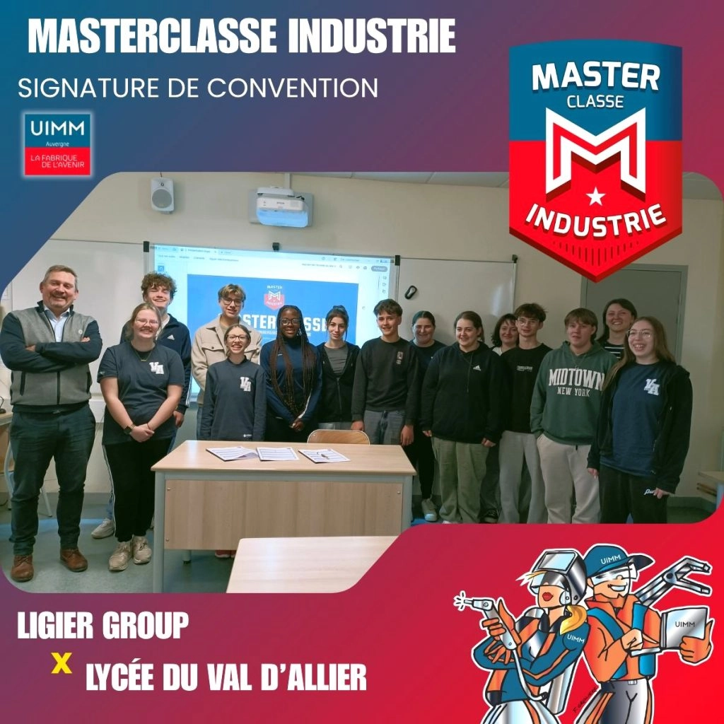 Ligier Group a récemment accueilli à Abrest des élèves du Lycée Val d’Allier de Varennes sur Allier dans le cadre d’une Masterclass Industrie, une initiative destinée à faire découvrir les métiers industriels aux jeunes du territoire.