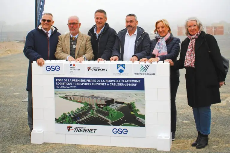 La pose de la première pierre du chantier (démarré cet été) a eu lieu ce 16 octobre en présence de Robert De Marchi, Directeur commercial Groupe chez GSE (constructeur du projet), Michel Tournaire, sous-préfet de Vichy, Eric Thévenet, Président des Transports Thévenet, Thierry Laplace, maire de Creuzier le Neuf et Annie Corne, représentant le Département de l’Allier et Vichy Communauté.