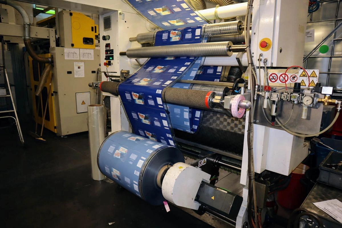 Pour produire nos films, il faut tenir compte de plusieurs étapes de fabrication. Il y a l’impression en flexographie, avant une étape consacrée au complexage qui consiste à contre coller deux films plastiques, l’un avec l’autre ou un papier avec un film plastique, afin de lui apporter des propriétés barrières, qui permettent la conservation du produit.