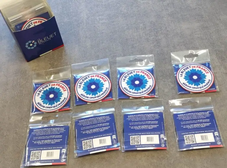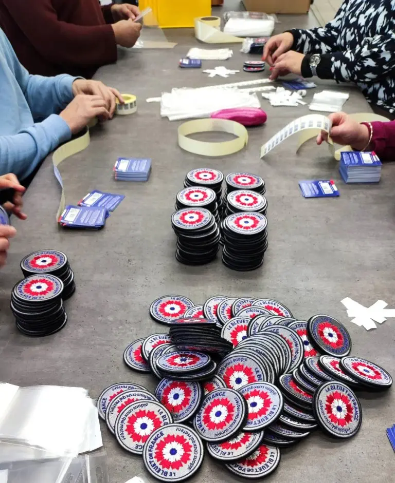 Depuis cette année, toujours pour le compte de la Fondation des Bleuets de France, L’ESAT assure également le conditionnement d’autres produits, tels que des pin’s tricolores dorés ou argentés (répliques métalliques des bleuets) , ou encore des patchs brodés déclinés aux couleurs des différents corps de l’armée française.